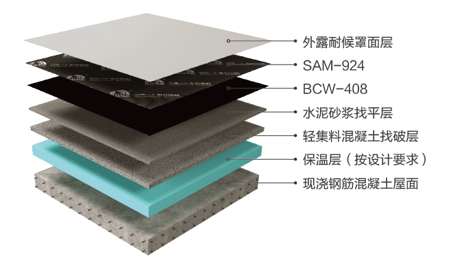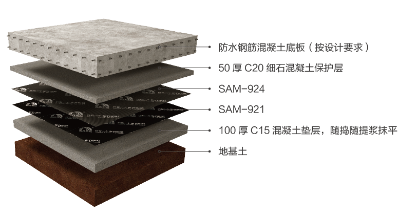 SAM-924纖維增強(qiáng)型高分子膜基自粘瀝青防水卷材常見(jiàn)的防水系統(tǒng)方案包括: